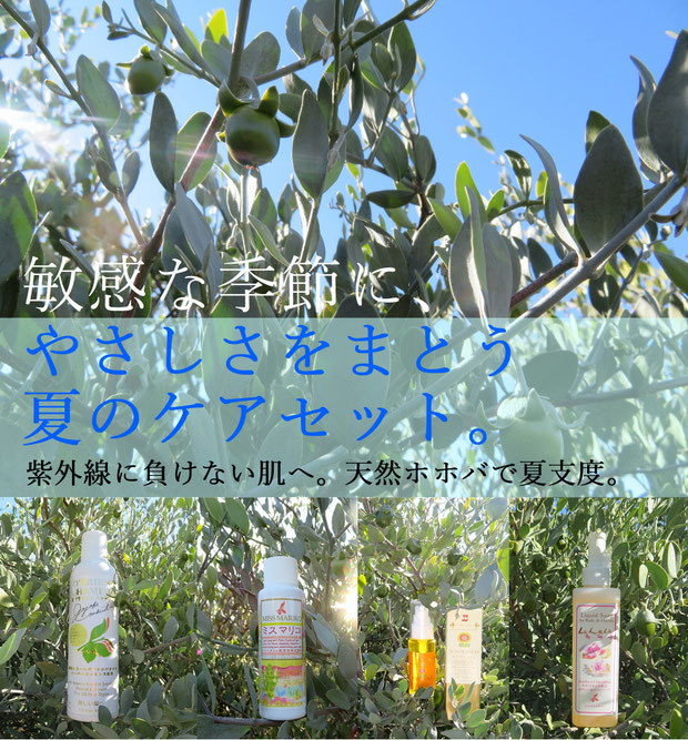 太陽の季節にぴったりの、ホホバケアセットをご用意しました。